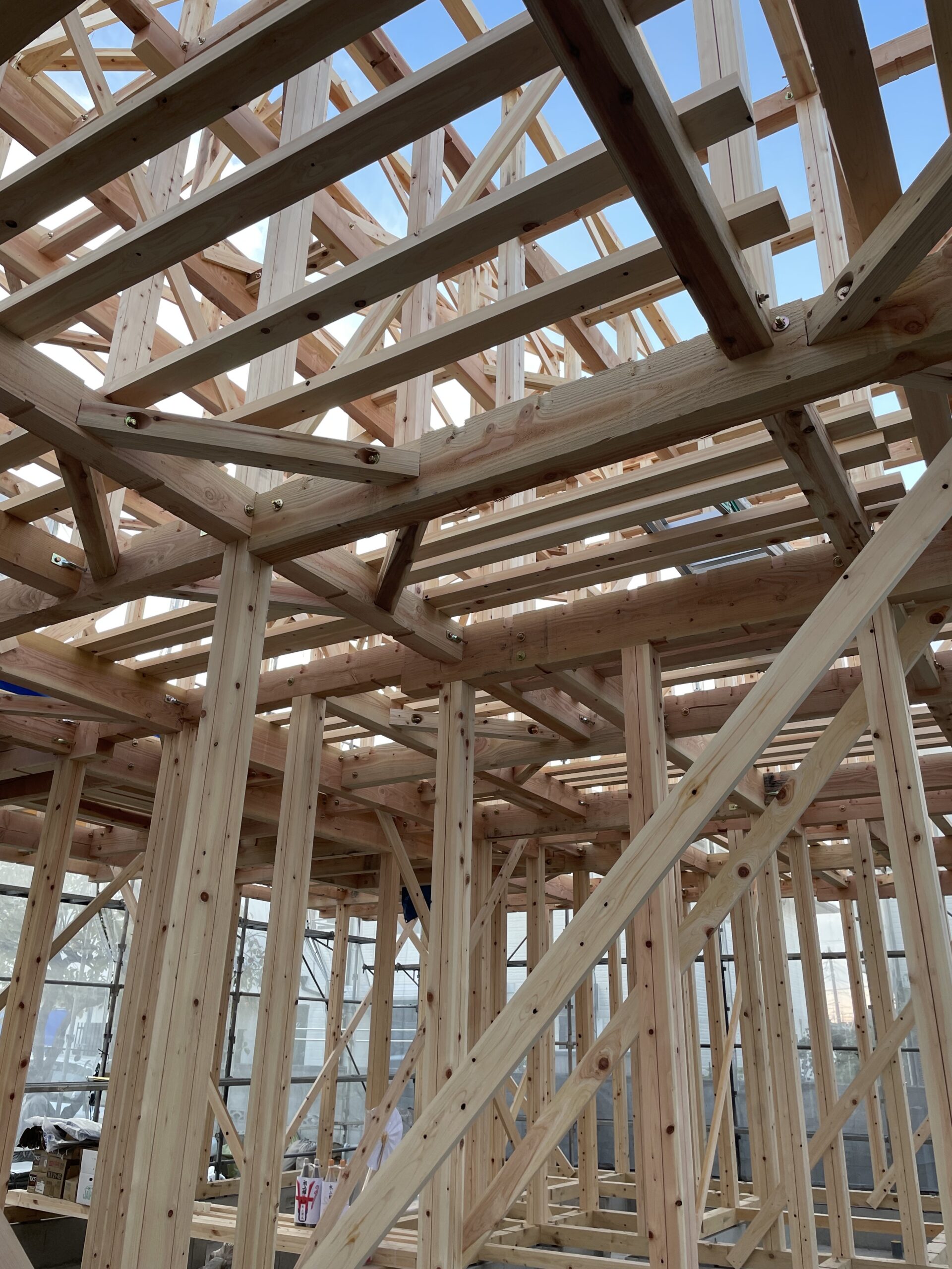 こちらは上棟したばかりの骨組工事中です。12月29日まで見学が可能。
