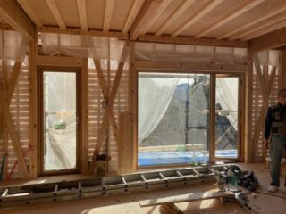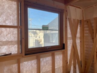 サッシは木製ノルド。断熱性及び調湿性、吸音性も高く、発砲系の断熱材と異なり耐火性を有するセルローズファイバー。そして減震装置も装備した仕様で見どころが沢山です。