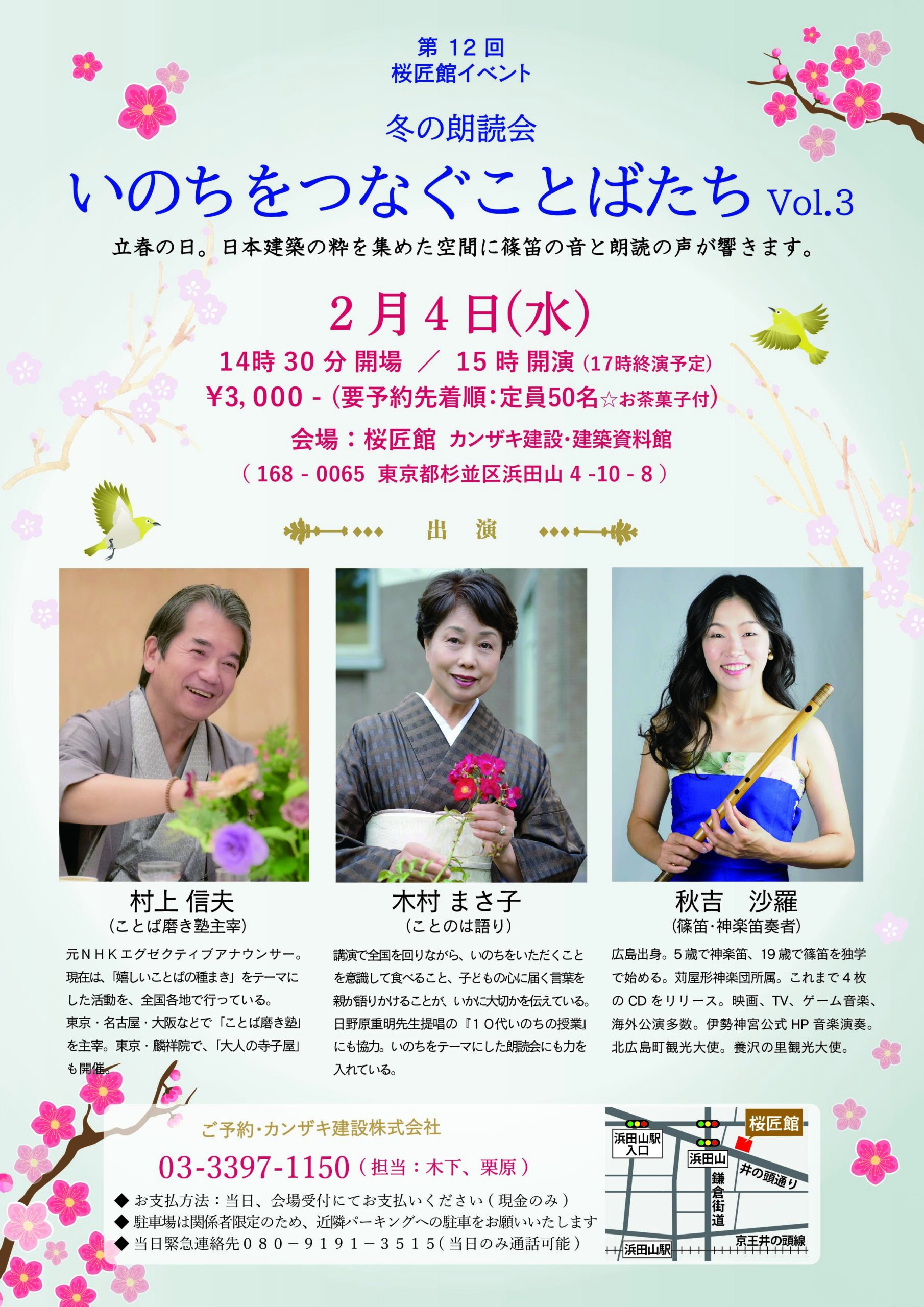 前回満員御礼だった朗読会の「冬の会」のご予約を開始いたします。前回を逃された方は是非、お早目にご予約ください。