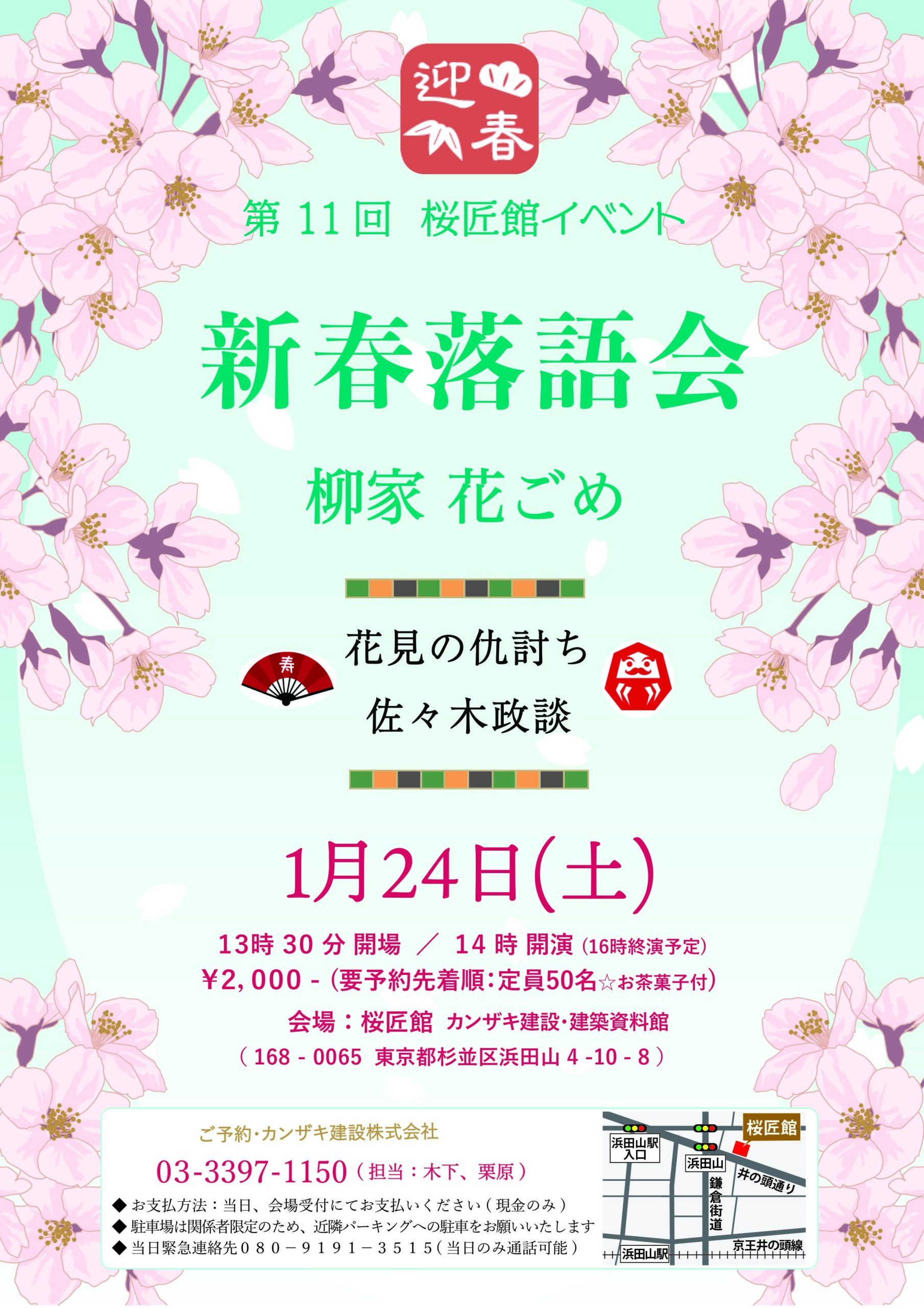 毎年恒例の新春落語会。この度は柳家花ごめさんをお迎えします。
