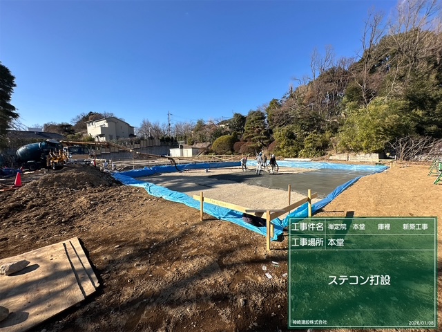 練馬区石神井町 「禅定院」本堂のステコン打設です。(年商4兆円以上の最大手で大人気ハウスメーカーでなんと、ステコンクリートを省略した基礎も実際に存在しております。)