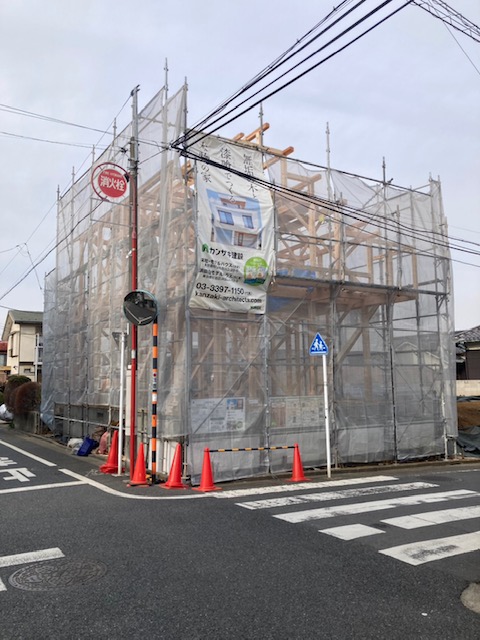 2/14 大田区南雪谷4-24-8で上棟式を迎えました。お客様のご兄弟が15年ほど前にカンザキ設計プロモーションで大規模木造リノベーションをしてくださり